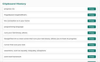 يتميز الملحق بواجهة مستخدم سهلة الاستخدام تبسط إدارة تاريخ الحافظة. يمكن للمستخدمين نسخ العناصر بسرعة مرة أخرى إلى حافظةهم بنقرة واحدة فقط، مما يضمن عدم فقدان النصوص المهمة. خفيف الوزن وسريع، يندمج مدير تاريخ الحافظة بسلاسة مع المتصفح، مما يجعله أداة أساسية لأي شخص يعمل مع النصوص بشكل منتظم.